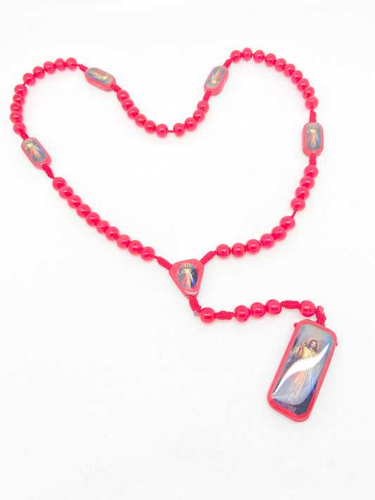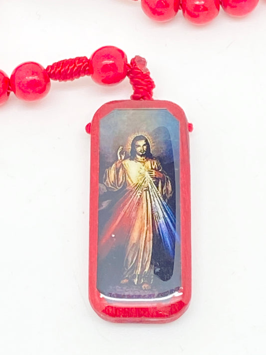 Rosario de madera de misericordia divina roja y blanca