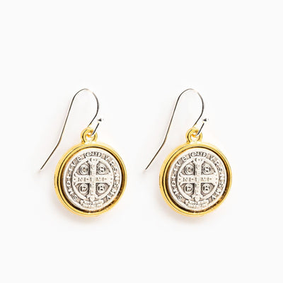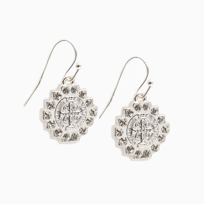 Sterling Silver Miraculous Medal and Crystal Earrings