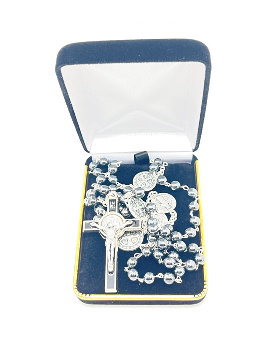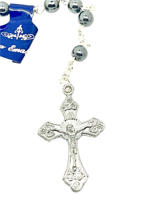 Rosario Con Cordón de Medalla Milagrosa Hematita (8mm)