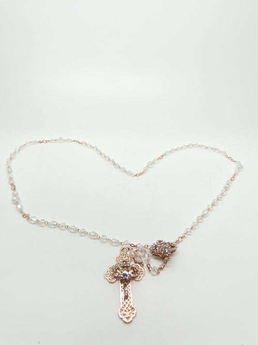 Rose Gold and Rhinestone Rosary with Crown Centerpiece.