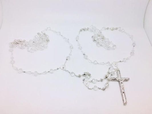 Boda lazo cristal transparente, cuentas de diamantes de imitación en una cadena de plata.