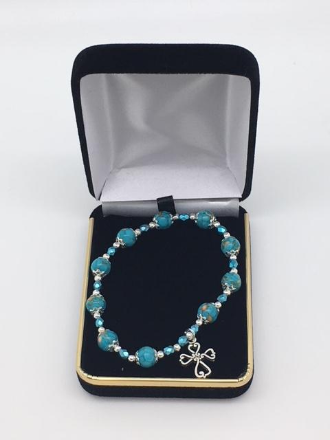 Mosaico de Turquesa con Cuentas de Rosario Pulsera con Cruz de Plata (8MM),