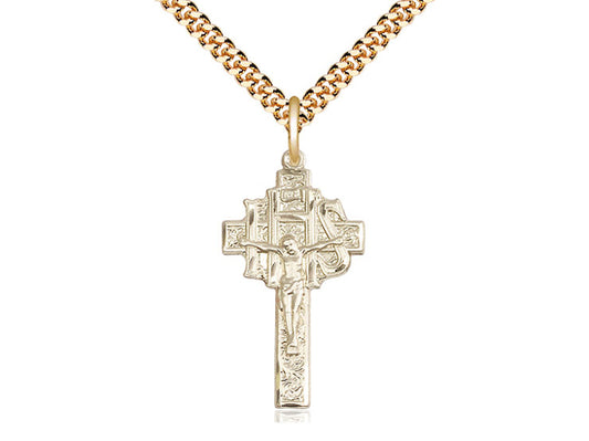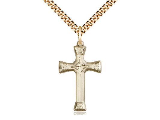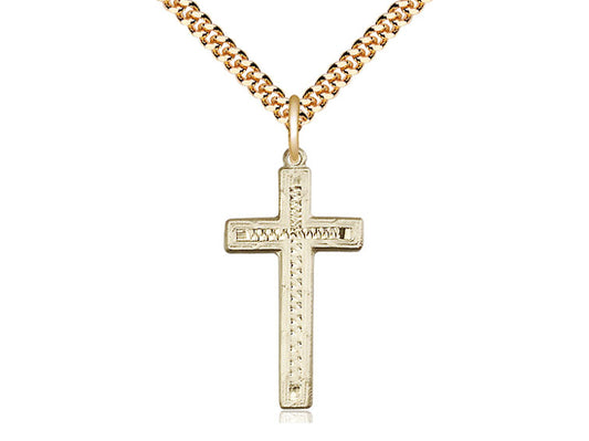 Colgante cruzado lleno de oro de 14kt en una placa de oro de 24 pulgadas cadena de acera pesada