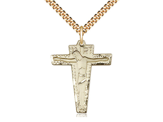 Colgante de crucifijo primitivo relleno de oro de 14kt en una placa de oro de 24 pulgadas cadena de acera pesada