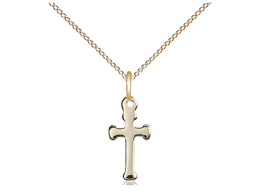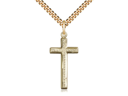 Colgante cruzado lleno de oro de 14kt en una cadena de acera de luz de oro de 18 pulgadas