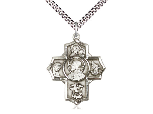 Patriz de 5 vías de Sagrado Corazón de Plata Sterling en una cadena de acera pesada de Rhodium de 24 pulgadas