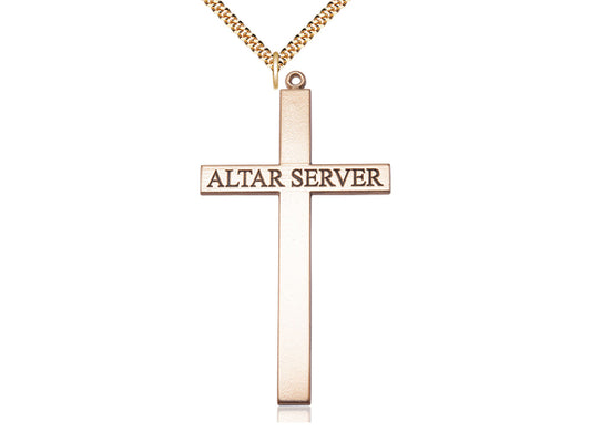 Colgante de alter del servidor alter relleno de oro de 14kt en una cadena de acera pesada en una placa de oro de 24 pulgadas