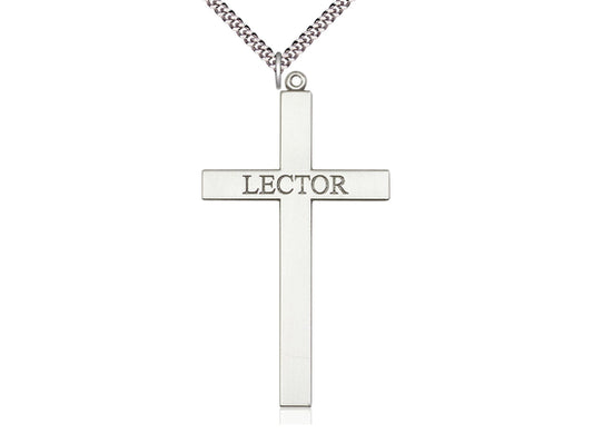 Colgante cruzado del lector de plata esterlina en una cadena de acera pesada de rodio de rollo de 24 pulgadas