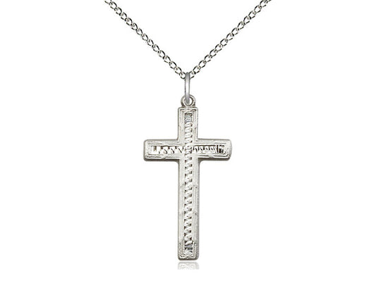 Colgante cruzado de plata esterlina en una cadena de acera de luz de plata esterlina de 18 pulgadas