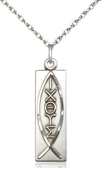 Collar De Pez De Plata De Ley Con Cadena De Plata De Ley Con Bordillo Ligero
