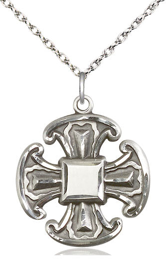Colgante cruzado de plata esterlina en una cadena de plata esterlina