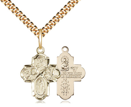 Colgante de 4 vías llena de oro de 14kt en una cadena llena de oro