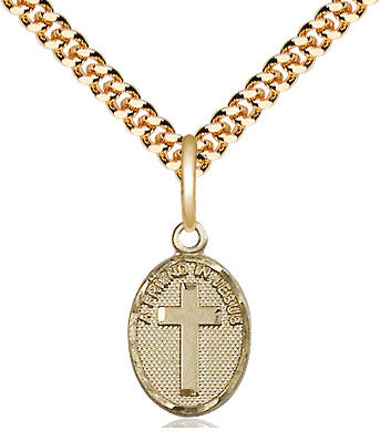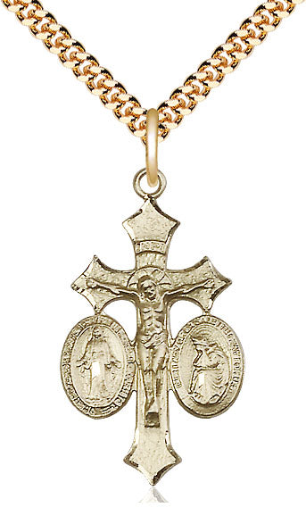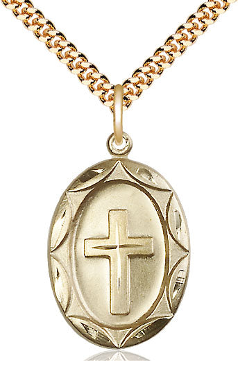 Colgante cruzado lleno de oro de 14kt en una cadena llena de oro