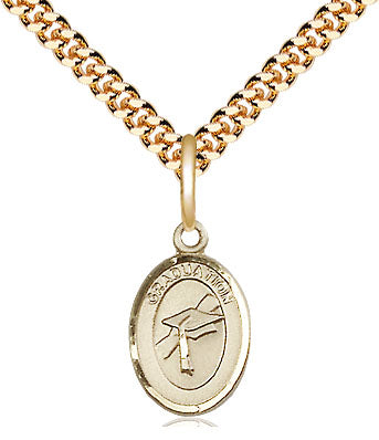 Medalla de graduación llena de oro de 14kt en una cadena llena de oro