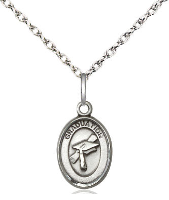 Medalla de graduación de plata esterlina en una cadena de plata esterlina