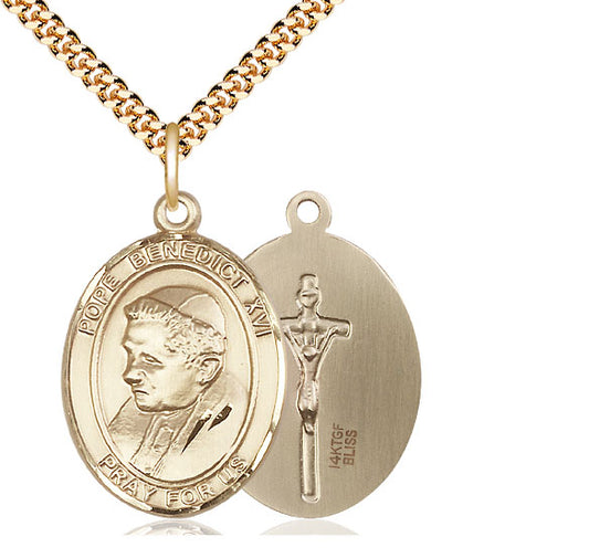 Colgante de 14kt relleno de oro Benedicto XVI en una cadena llena de oro