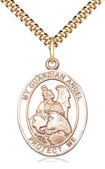 Colgante de protector de ángel guardián lleno de oro de 14kt en una cadena llena de oro