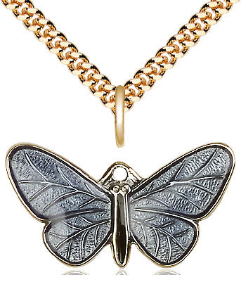 Colgante de mariposa de oro de 2 tonos relleno de oro en una cadena llena de oro