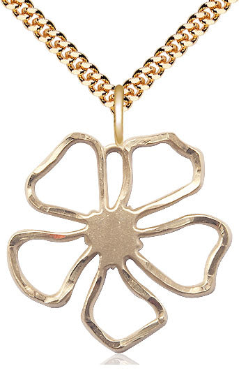 Colgante de flores pétalos llenos de oro de 14kt en una cadena llena de oro