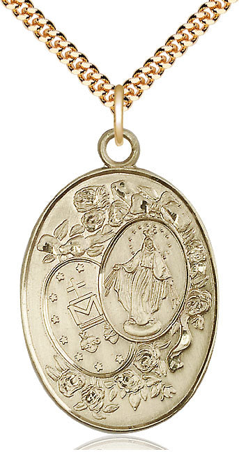 Colgante milagroso lleno de oro de 14kt en una cadena llena de oro