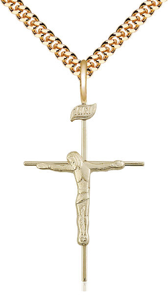 Pargante de crucifijo lleno de oro de 12kt en una cadena llena de oro
