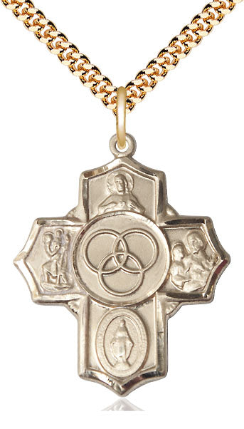 Colgante de 5 vías de la familia mezclada llena de oro de 14kt en una cadena llena de oro