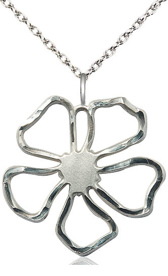 Sterling Silver Five Petal Flower Colgante en una cadena de plata esterlina