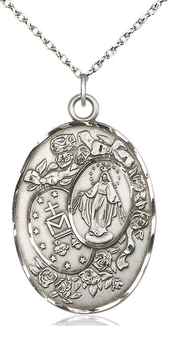 Colgante milagroso de plata esterlina en una cadena de plata esterlina