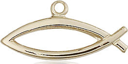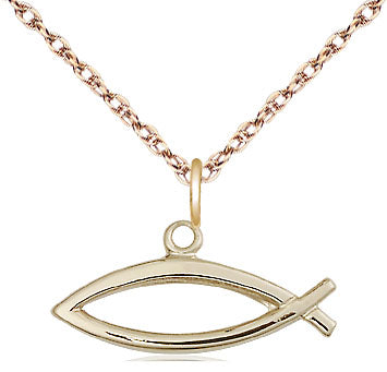 Colgante de pescado de oro de 14kt en una cadena de acera de oro