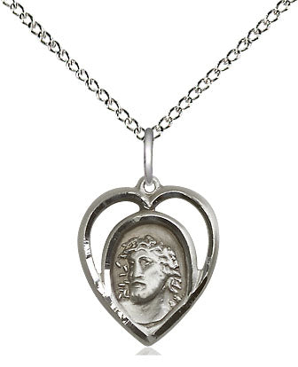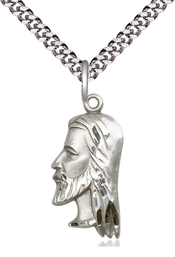 Colgante de cabeza de Cristo de plata esterlina en una cadena de acera de luz de plata esterlina