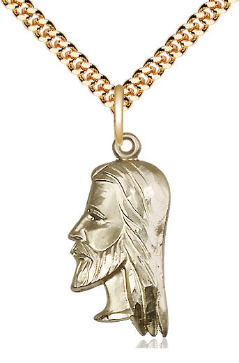Colgante de cabeza de Cristo lleno de oro de 14kt en una cadena de acera llena de oro