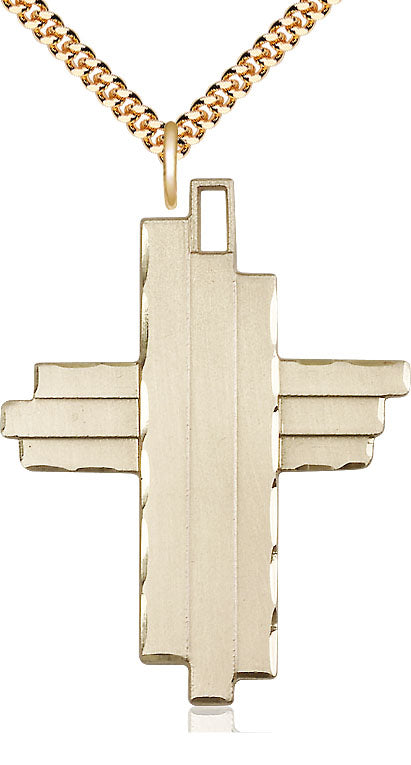 Colgante cruzado lleno de oro de 14kt en una cadena de acera de placa de oro