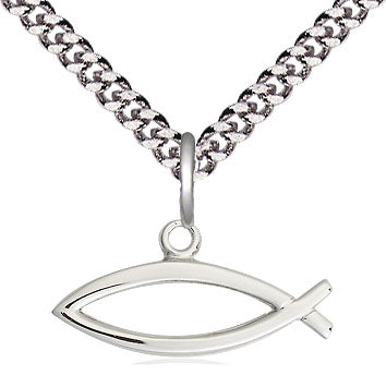 Colgante de pescado de plata esterlina en la cadena de acera ligera