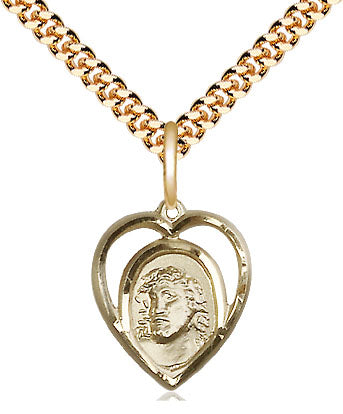 Colgante Ecce Homo lleno de oro de 14kt en una cadena de acera de luz llena de oro