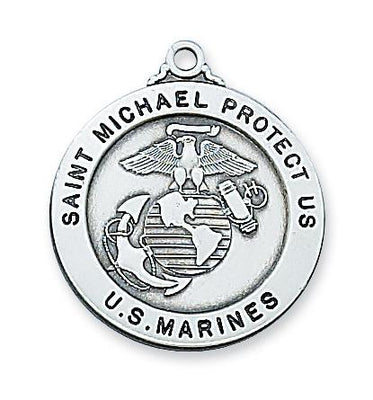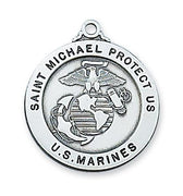 Sterling Silver Saint St Michael & US Marines Medal (7/8")