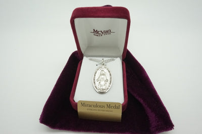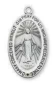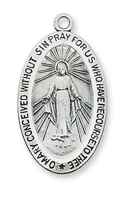 Silver Miraculous Medal 1-1/8" with chain 18".
