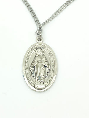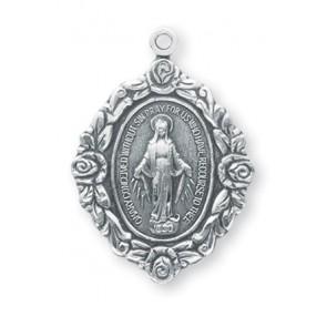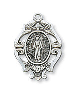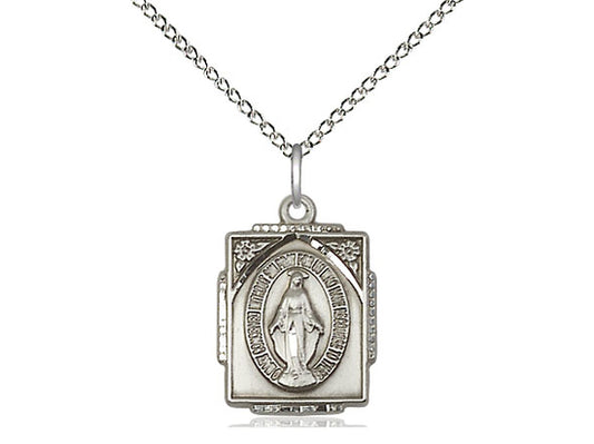Colgante milagroso de plata esterlina en una cadena de acera de luz de plata esterlina de 18 pulgadas
