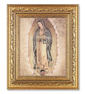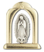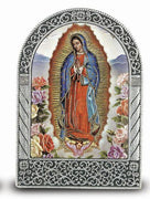 Nuestra Señora de Gudalupe Placa de Oro y Plata En Pie