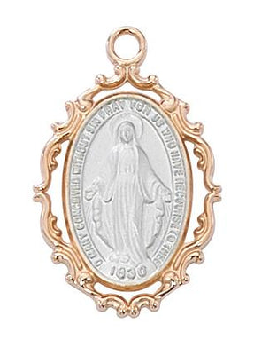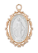 Borde de oro rosa con plata esterlina Nuestra Señora de Gracia (1 ") con cadena de 18"
