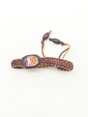 Santa misericordia y nuestra señora Guadalupe, cuerdas marrones y brazaletes de madera.