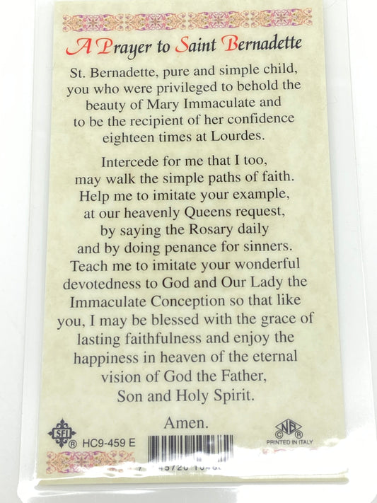 Tarjeta sagrada laminada de St. Bernadette (plástico cubierto)