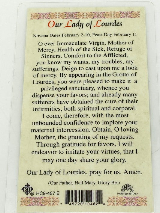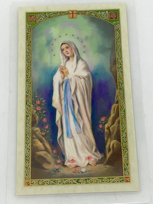 Nuestra Señora de Lourdes Lamined Holy Card (plástico cubierto)