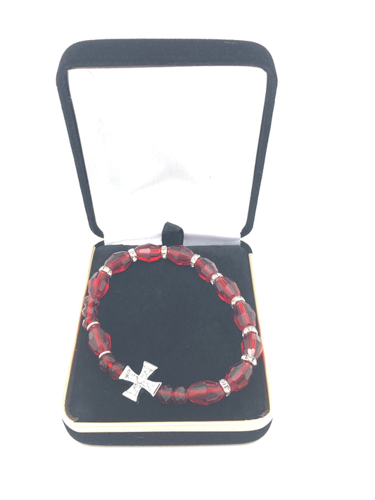 Brazalet de Rosario de Cristal Genuino Rojo (10 mm)