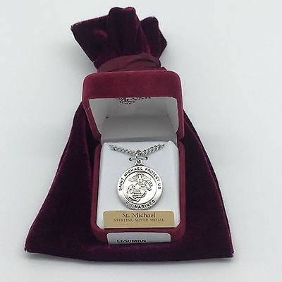 Sterling Silver Saint St Michael & US Marines Medal (7/8")