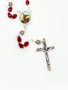 Medalla De Doble Cara De San Miguel el Arcángel Tono Plateado Con Esmalte Rojo 1 1/2 "