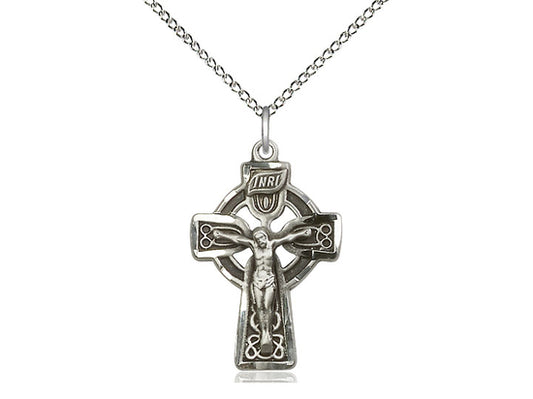 Crucifijo celta de plata esterlina (5/8 ') en cadena de 18 pulgadas (L8084)