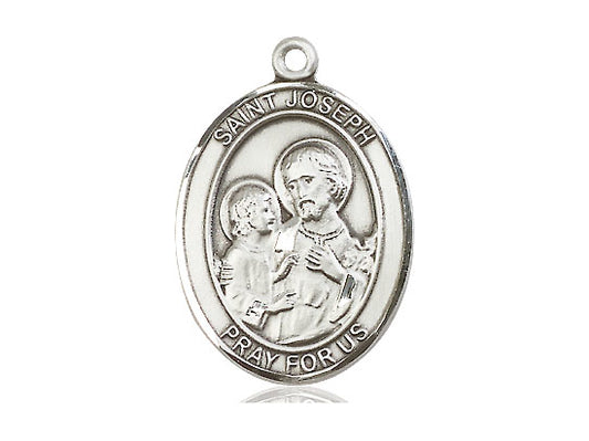 Medalla de San José de Plata De Ley 24"Cadena de Curb Pesada de Rhodium Ligero.