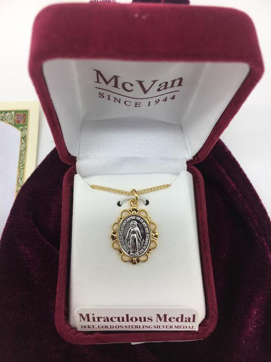 Medalla Milagrosa de Plata Esterlina, Dos Toned (3/4") 18 Cadena.
