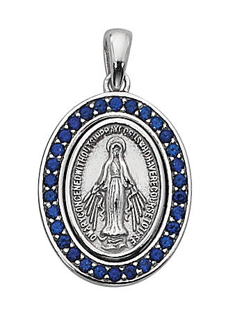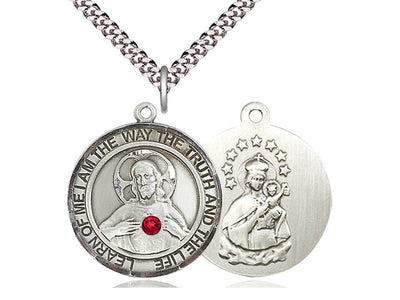 Colgante escapular de plata esterlina con una piedra rubí swarovski de 3 mm en una cadena de acera pesada de rodio de 24 pulgadas