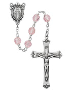 Rosario de corte de lata de cristal rosa de plata de ley (7 mm)